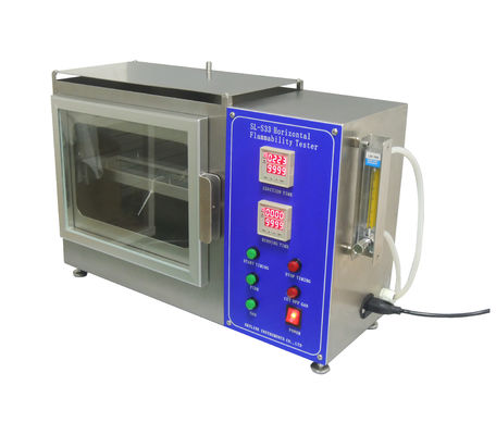 El instrumento consiste en dos porciones: la caja de control y la caja de la combustión. La muestra es afianzada con abrazadera completamente por la abrazadera y colocada en el soporte de la caja de la combustión. La llama es encendida por la caja de control por cierto tiempo, y se extingue la llama. Observe la extensión de la llama de la muestra, mida el tiempo que toma para que la llama separe cierta distancia en la muestra, calcular la velocidad de la extensión de la llama, y evaluar la resistencia de la llama de la muestra.