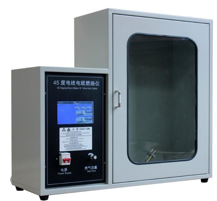El ensayo de combustión vertical de un solo cable se fija según el tamaño de Bunsen (quemador de Bunsen) y la fuente de gas específica (Bing Wan),de acuerdo con una cierta altura de la llama y una cierta aplicación del ángulo de la llama en el estado vertical de la aplicación de la muestra para probar el tiempo de ignición, la ignición, la duración de la combustión y la combustión para evaluar su duración, el riesgo de incendio y el riesgo de incendio.