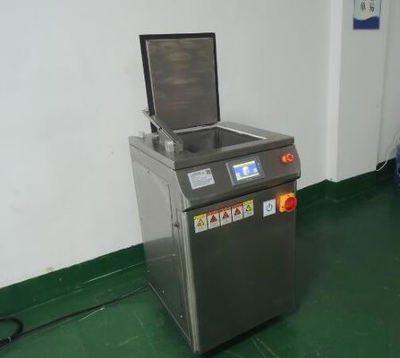 Ponga una determinada cantidad de agua y de detergente en el baño del probador para hacer una solución. Después de calentar a cierta temperatura, ponga la muestra en ella. Después de funcionar con el instrumento por cierto periodo de tiempo, saque la muestra para la evaluación.