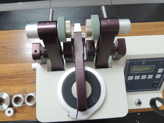 Taber Abrasion Tester (Taber Abraser) utiliza el patrón X de abrasión producida por una acción rotativa de un par de ruedas abrasivas.poseedores de muestras, ruedas abrasivas, refacer de ruedas y unidad de vacío.