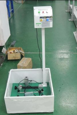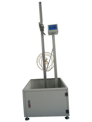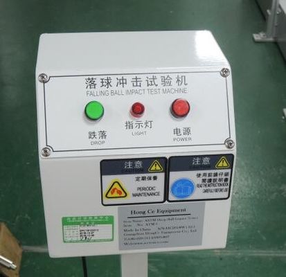 El probador de caída del impacto de la bola de acero es probar la resistencia del impacto del material frágil como el plástico, de cerámica, de acrílico, y el vidrio. Para realizar la prueba de impacto para los juguetes que cubren la cara (como máscara). Cumpla con ASTM F963 8.7.4, ISO 8124-1 5,14, las máquinas de prueba del impacto de la bola del descenso proporcionan una bola de acero estándar que sea fijada por adsorción por la fuerza magnética, y cuando estaba cortada la fuente de alimentación al magnetismo, la bola de acero caída libre de cierta altura golpearía el espécimen y después consideraría visualmente la calidad después de daño, determinar el grado de su resistencia de afectación. El peso y la altura de caída se pueden cambiar según el material del espécimen