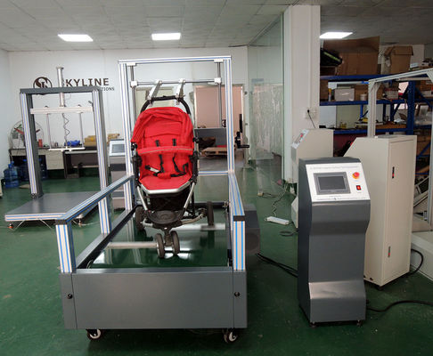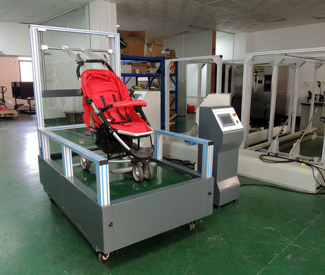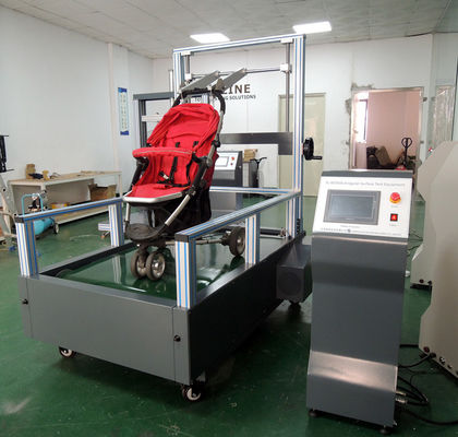 Esta máquina simula el estado corriente de un cochecito. Fije la muestra con cierta carga en el banco de pruebas, fije el número de pruebas requeridas, y ajuste la velocidad requerida para la prueba. Después de la prueba, compruebe si la estructura y el funcionamiento de la muestra están intactos.
