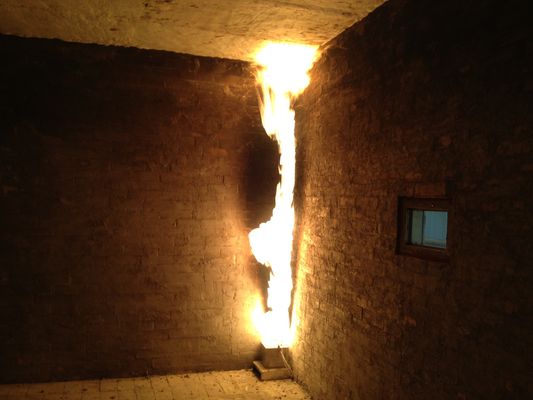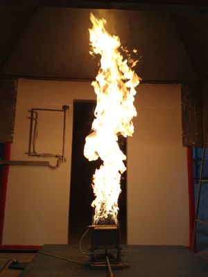Calorímetro intermedio de la escala, usado para medir las características de la combustión de las muestras expuestas verticalmente a una fuente de radiación específica
