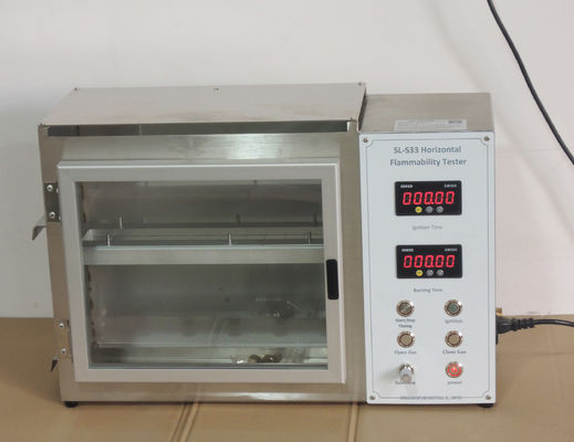 El probador horizontal de la inflamabilidad puede detectar la retardancia relativa de la velocidad y de la llama de combustión de las materias textiles, especialmente telas interiores automotrices. Propiedades ignífugas de materiales interiores automotrices bajo falta y condiciones anormales.