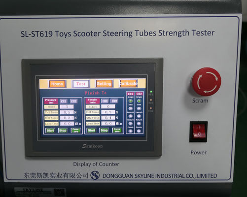Probador de dirección de la fuerza de los tubos de la vespa de los juguetes aplicarse para probar la fuerza de los tubos de dirección de la vespa del juguete, incluyendo resistencia a las fuerzas hacia abajo y resistencia a las fuerzas ascendentes.