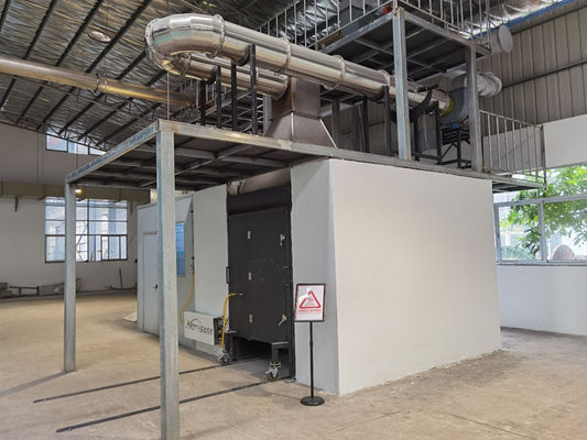 Este equipo de prueba incluye el laboratorio de la combustión, la sala de control, 2 pequeños carros, el tubo de escape, el marco fijo, el sistema de la colección del humo, el dispositivo integrado del dispositivo de sistema de medida, de la recopilación de datos y del análisis, dispositivo de control de suministro de gas.