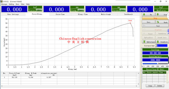 3. Durante el proceso de la prueba, haga manualmente las estadísticas de múltiples puntos, y calcule automáticamente el valor medio y el valor de la fractura (convenientes para la prueba de peladura y de rasgado), que pueden almacenar grupos múltiples de datos.