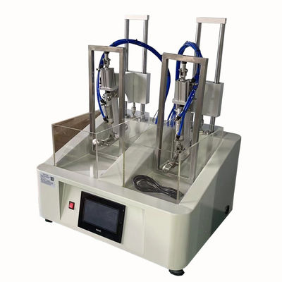 El depósito de agua se llena con un volumen especificado de agua de color. Una muestra se coloca en el pie artificial y se dobla en un ángulo y velocidad determinados, e inspecciona a intervalos para la penetración de agua.