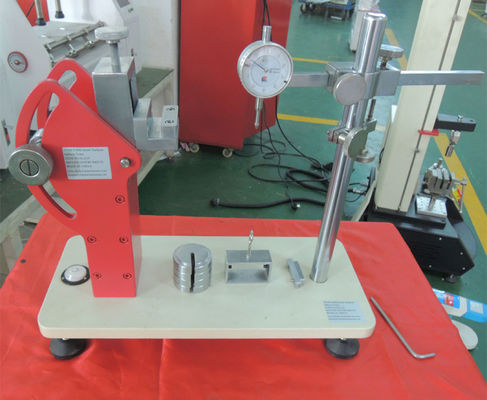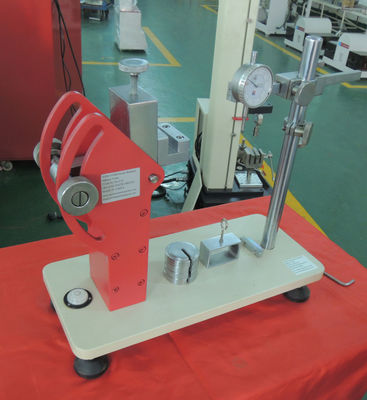 La máquina de cuero del probador de la tiesura se utiliza para medir la tiesura en la dirección longitudinal de las cañas de acero usadas para el refuerzo de la región de la cintura de zapatos, la caña se afianza con abrazadera en su extremo del talón y la encorvadura como haz voladizo por las masas añadió a su delantero, después calcula la rigidez flexural de la caña.