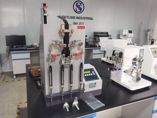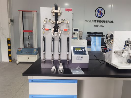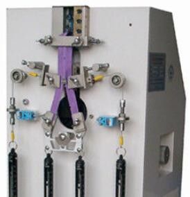 El probador de la cremallera, determinar la resistencia a la reciprocación de la cremallera (sujeción de diapositiva), el espécimen de la prueba se sujeta a un número especificado de operaciones cíclicas mientras que bajo tensión lateral y longitudinal.